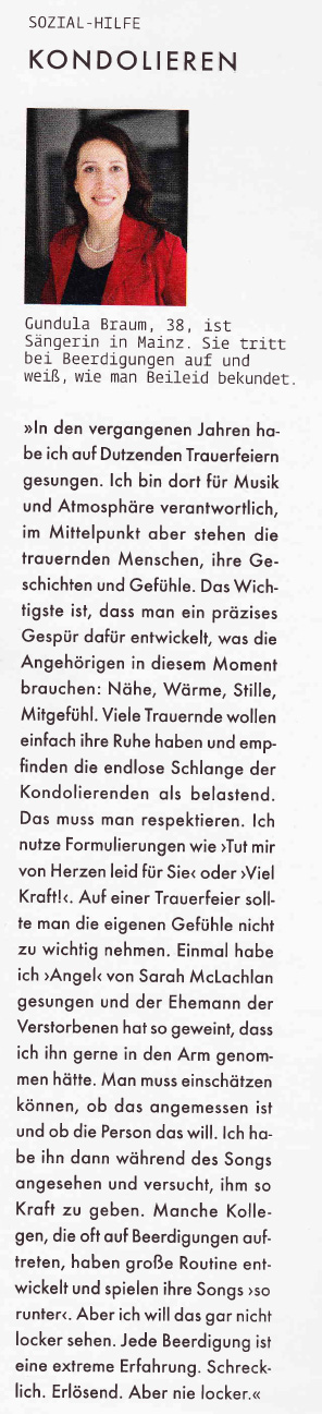 https://www.youtube.com/watch?v=LXWgkmnYGDo Ausschnitt des Interviews über das Thema "Singen an Beerdigungen"